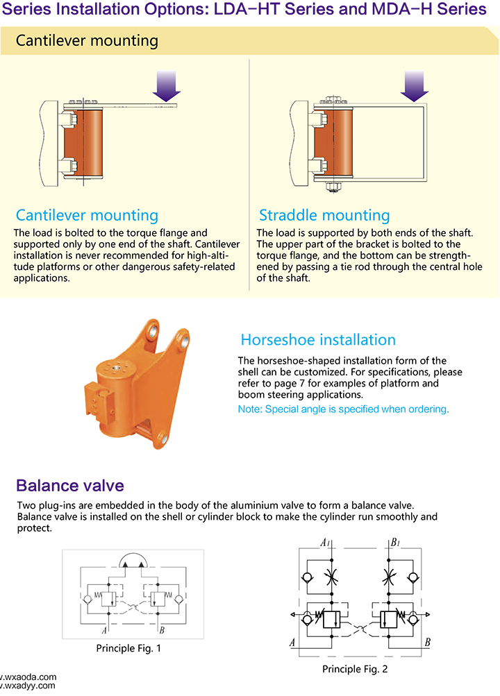 MDA-H系列螺旋擺動(dòng)油缸和LDA-HT系列螺旋擺動(dòng)油缸安裝選項(xiàng):