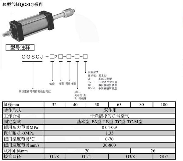 輕型氣缸QGSCJ雙活塞桿 可調(diào)行程輕型氣缸